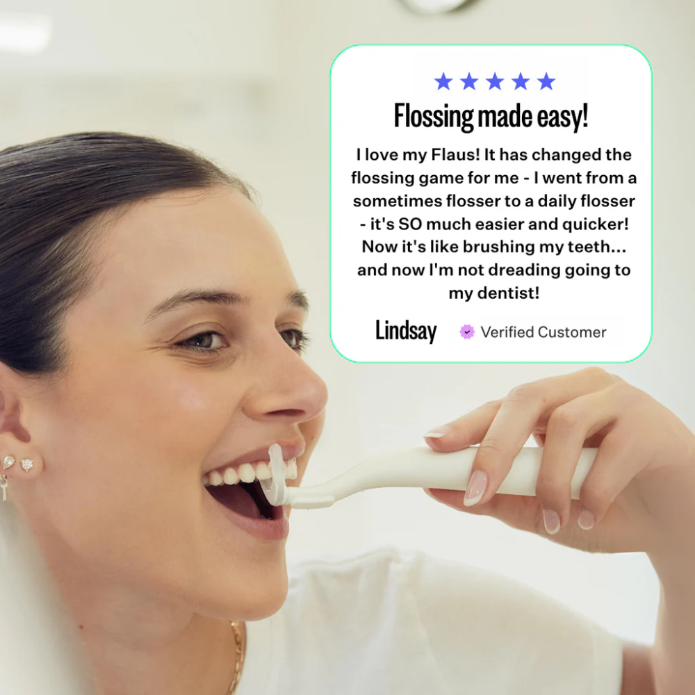 The sonic vibrations will provide a floss-assist motion as Flaus moves quickly and gently between tight teeth