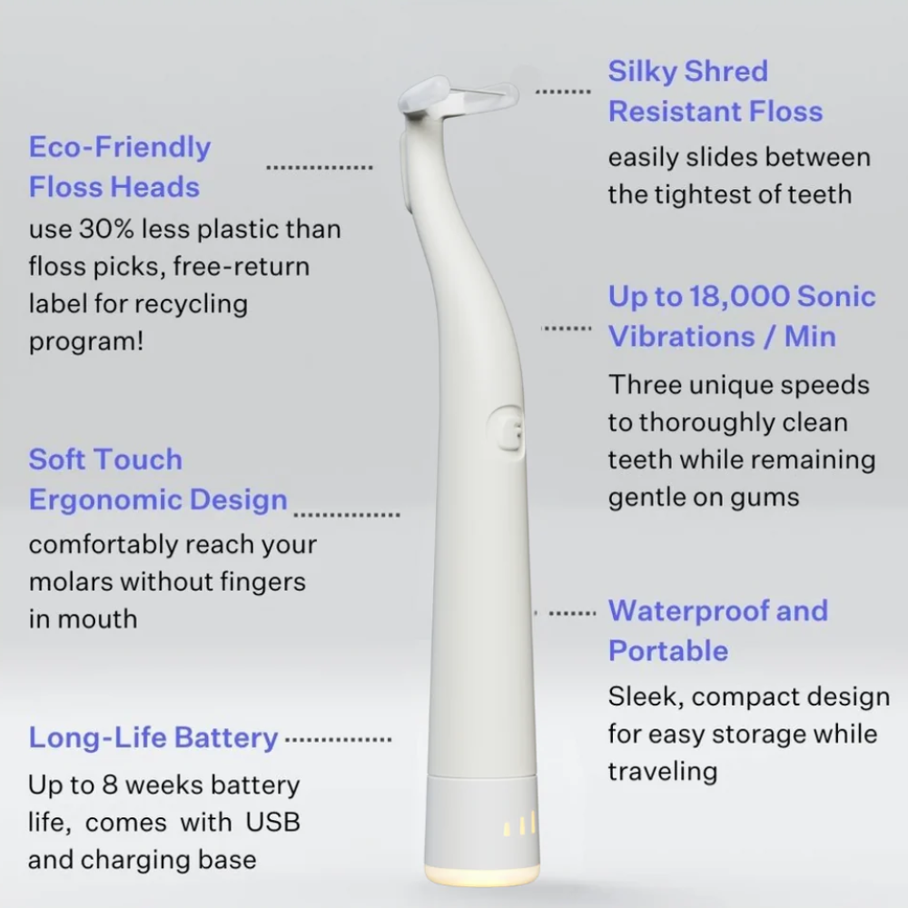 - Save time — Floss in under 1 minute (5x faster than traditional floss).