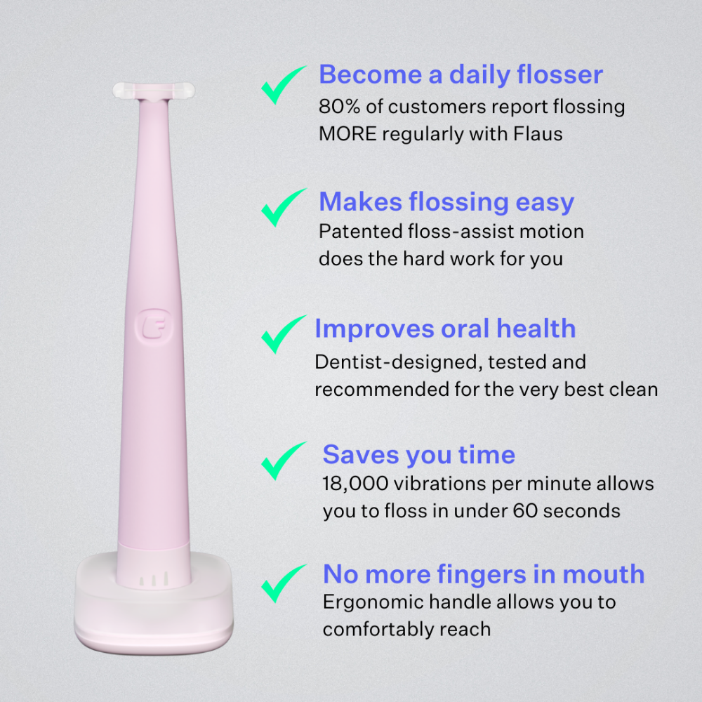 The sonic vibrations will provide a floss-assist motion as Flaus moves quickly and gently between tight teeth