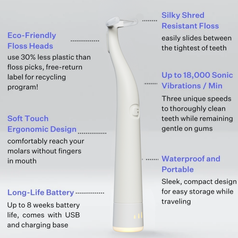 - Save time — Floss in under 1 minute (5x faster than traditional floss).