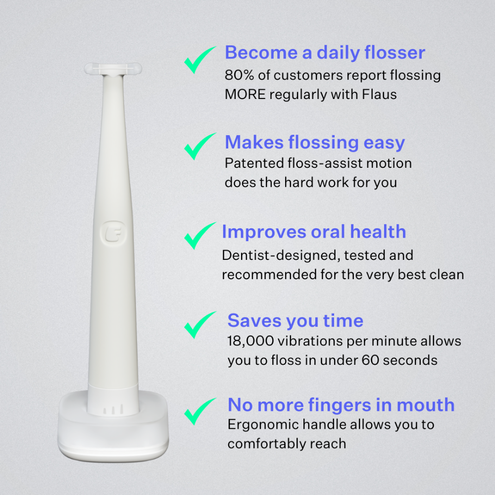 The sonic vibrations will provide a floss-assist motion as Flaus moves quickly and gently between tight teeth